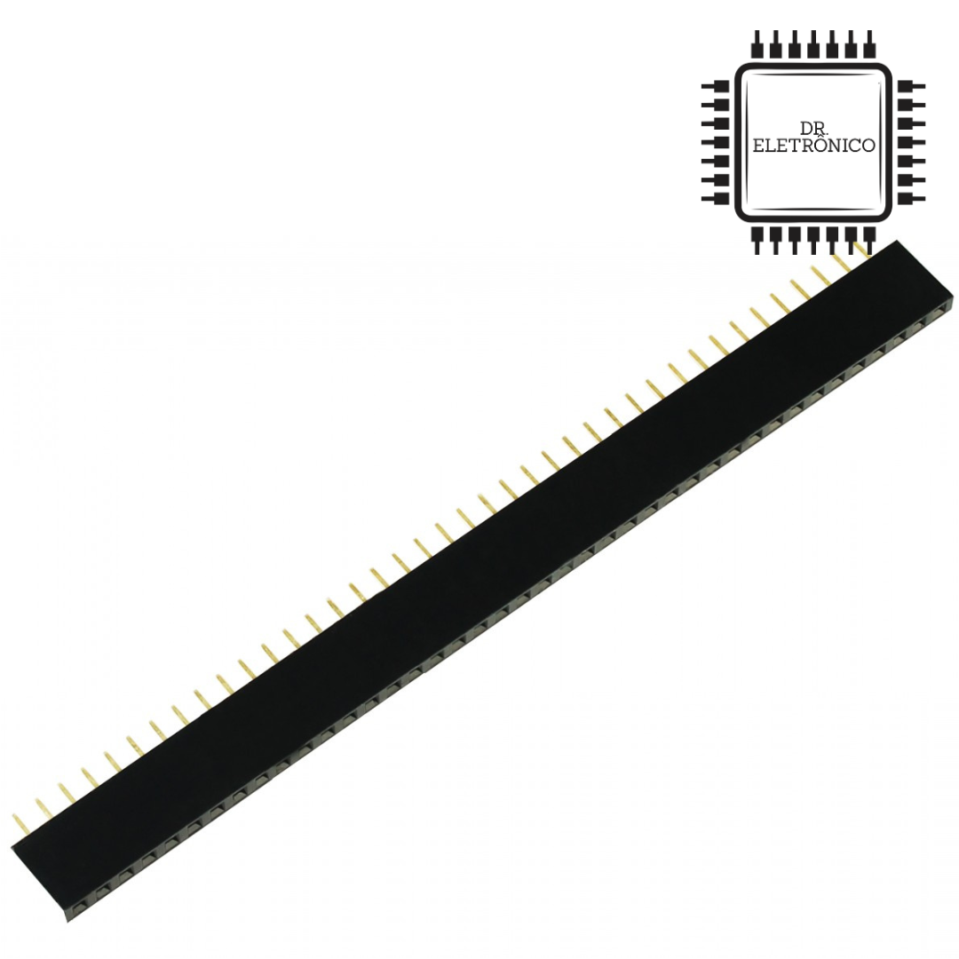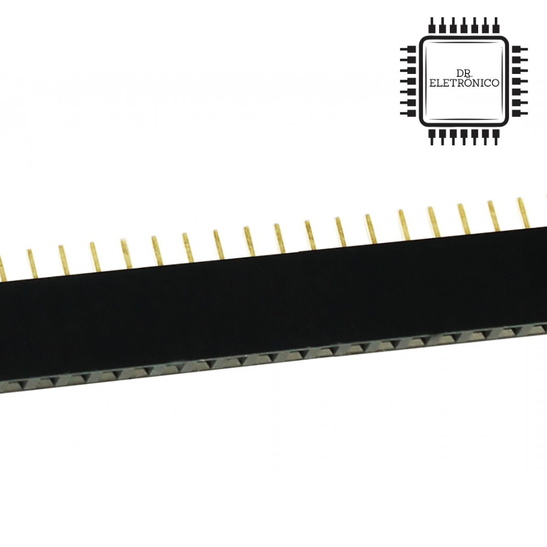 O Conector Barra de Pinos Femea 40 pinos 180 graus é um produto muito útil durante o desenvolvimento de projetos robóticos e domóticos (automação residencial), conta com uma barra com 40 pinos fêmea para aplicação em quaisquer sistemas microcontroladores, entre eles, Arduino, PIC, Raspberry PI, AMR, etc.