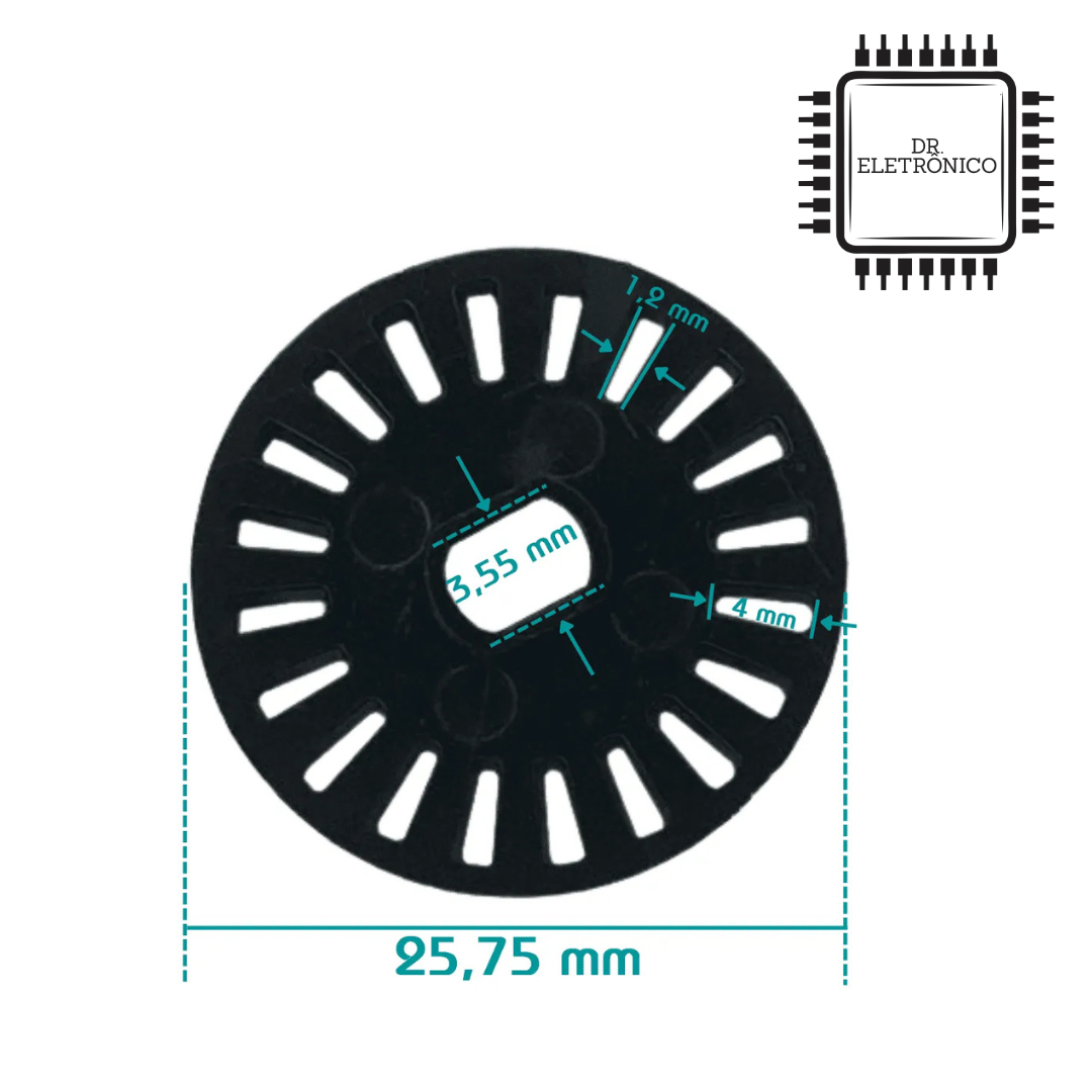 O Disco para encoder com 20 furos serve para converter movimento rotacional em sinais elétricos digitais, permitindo que um encoder meça a posição angular e a velocidade com base na detecção da passagem de luz (ou outro sensor) através dos seus 20 furos. Essencialmente, é a peça-chave que fornece 20 pulsos por rotação para o sistema de controle.