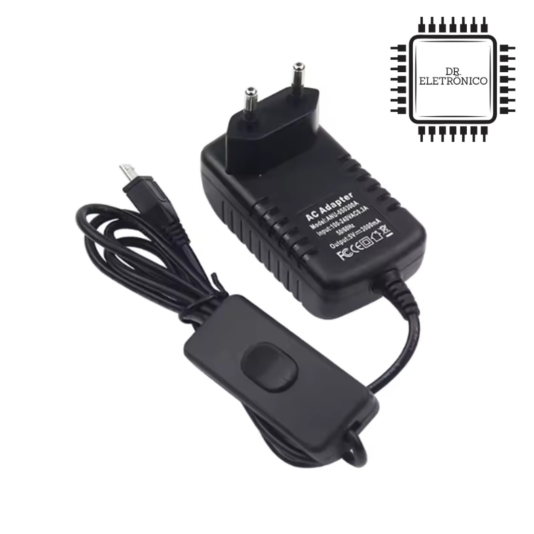 Energia e Cabos: * 1x Fonte 5V 3A Estável.