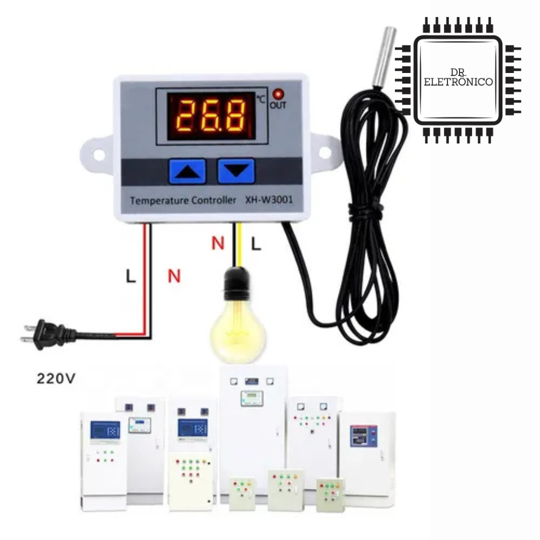 O Termostato Digital HX-W3001 é um controlador de temperatura pronto para uso, ideal para quem busca praticidade. Ao contrário do modelo W1209, ele já vem com um gabinete protetor e pode ser ligado diretamente na rede elétrica (dependendo da versão), facilitando a instalação em chocadeiras, aquários e cervejeiras caseiras.