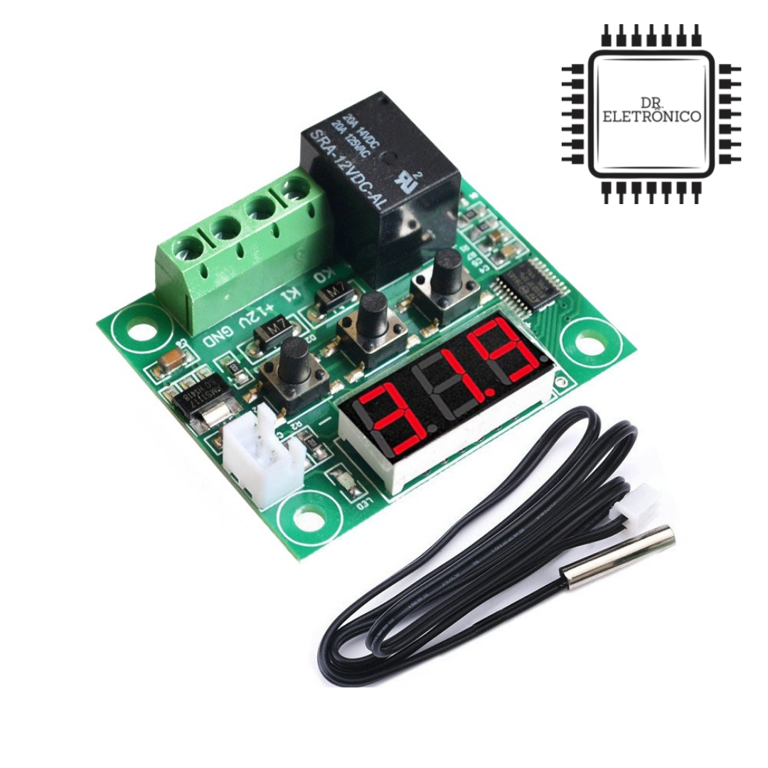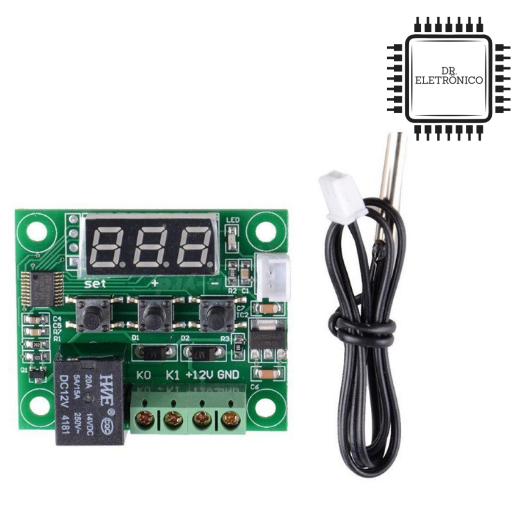 O Termostato Digital W1209 é um módulo de controle de temperatura de baixo custo e alta precisão, ideal para projetos que exigem acionamento automático de cargas (aquecimento ou resfriamento) conforme a temperatura programada. É amplamente utilizado em chocadeiras, aquários, estufas e sistemas de arrefecimento.